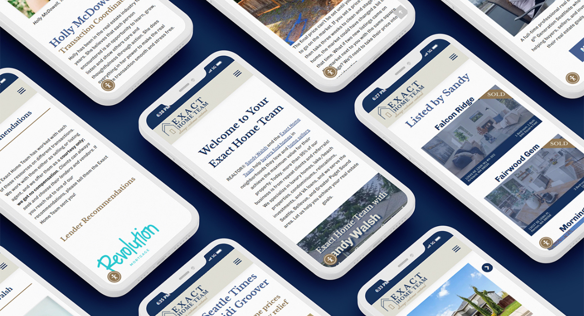 The priority for Exact Home Team’s redesign was showcasing the team’s skills and ample experience. We knew Sandy’s edge as a true Seattle native helps her stand out above competitors, and her website needs to enforce this message. As clients of hers ourselves, we knew what a wonderful experience it is to work with Sandy — she has seemingly endless knowledge of the area, offers guidance along every step of the way, and has a determined commitment to deliver for her clients. These characteristics needed to be highlighted on her new website. Our design was inspired by the experience of working with her.