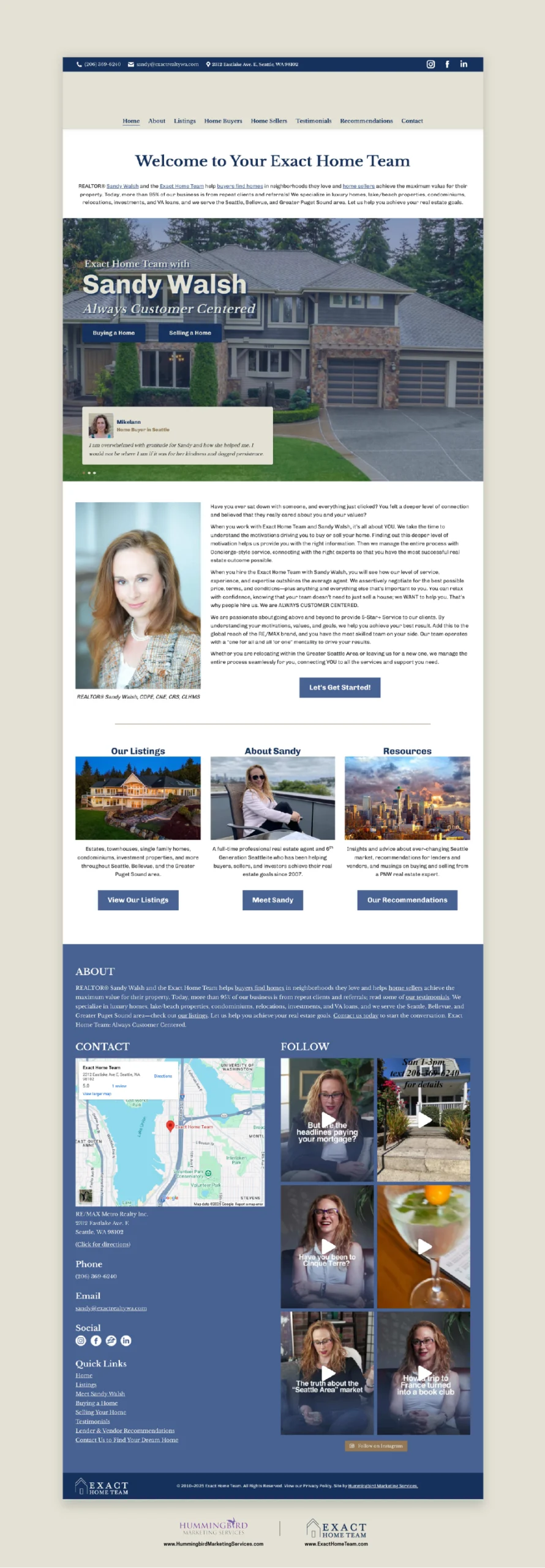 Views of the Exact Home Team Website, real estate site designed by Hummingbird Marketing Services in Seattle