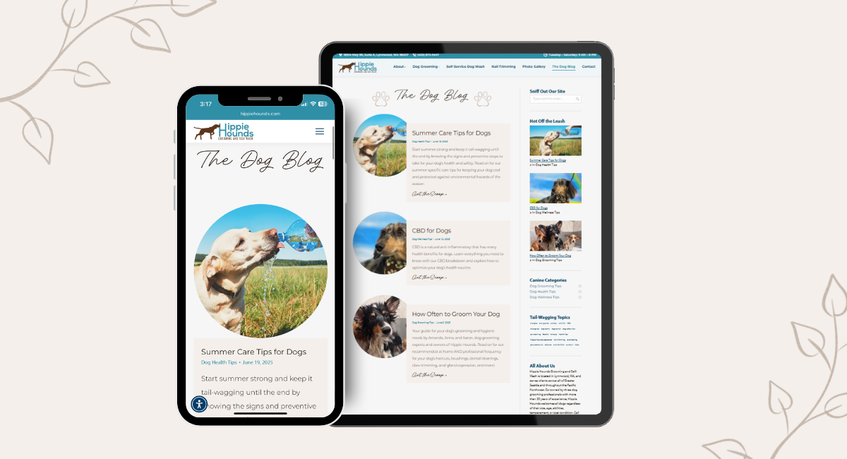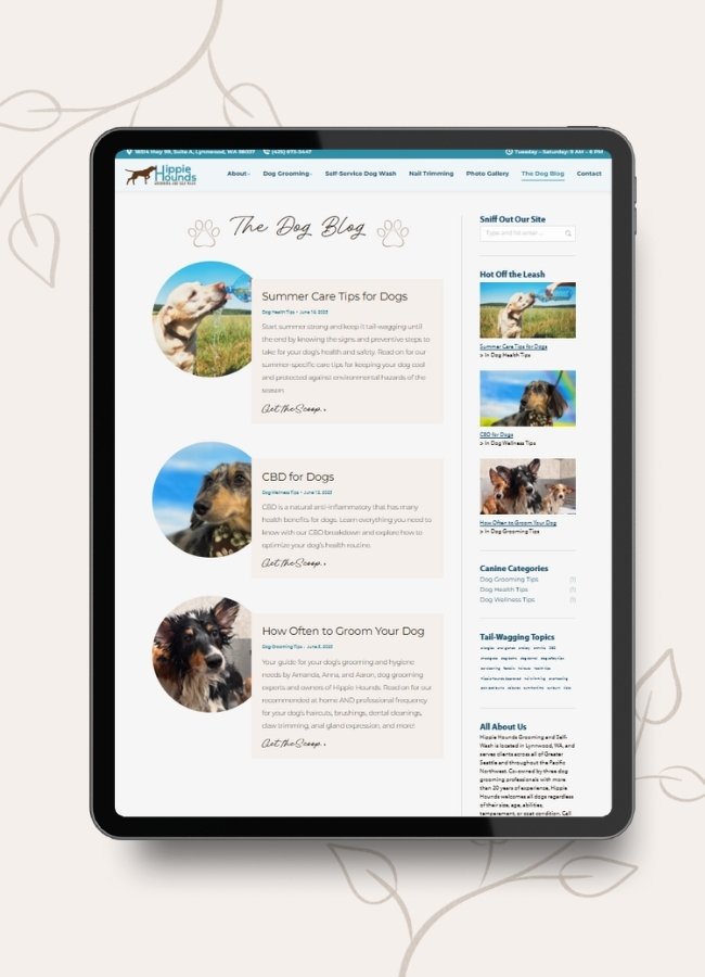 Before working with Hummingbird Marketing Services, the Hippie Hounds site did not have a blog. Blogs are an amazing resource for providing education, establishing expertise, and driving SEO. For a business like Hippie Hounds, which is so focused on wellness and owner education, adding a blog was a no-brainer.
