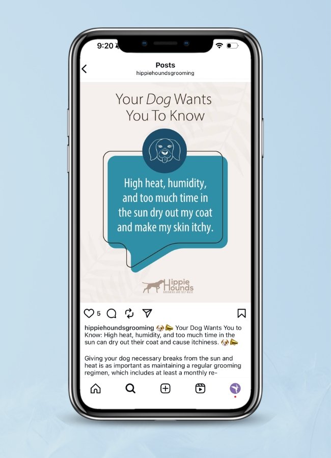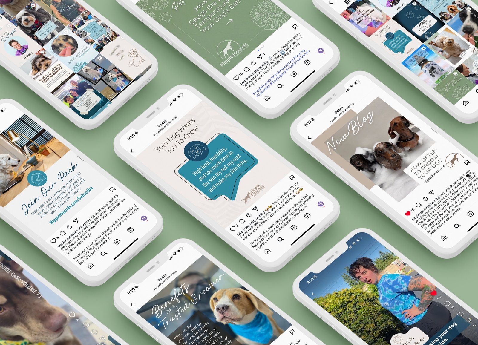 While the Hippie Hounds’ social pages had a great following, the owners had no bandwidth to post regularly. Between caring for dogs, working with customers, and managing all the many tasks of running a successful business, social media posting fell on the back burner. Their team was capturing so much content, but no one had the time to develop the photos and videos into posts. Furthermore, the content they did post lacked a balance of content types. An established strategy was missing from their social media presence.