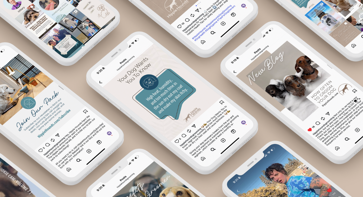 As with all of our social media management clients, we create a custom kit full of social media templates for their continued use. For Hippie Hounds, we incorporated the hand-drawn elements from the website, as well as fonts and a color palette, mimicking the light and airy aesthetic of their site and making brand consistency effortless.