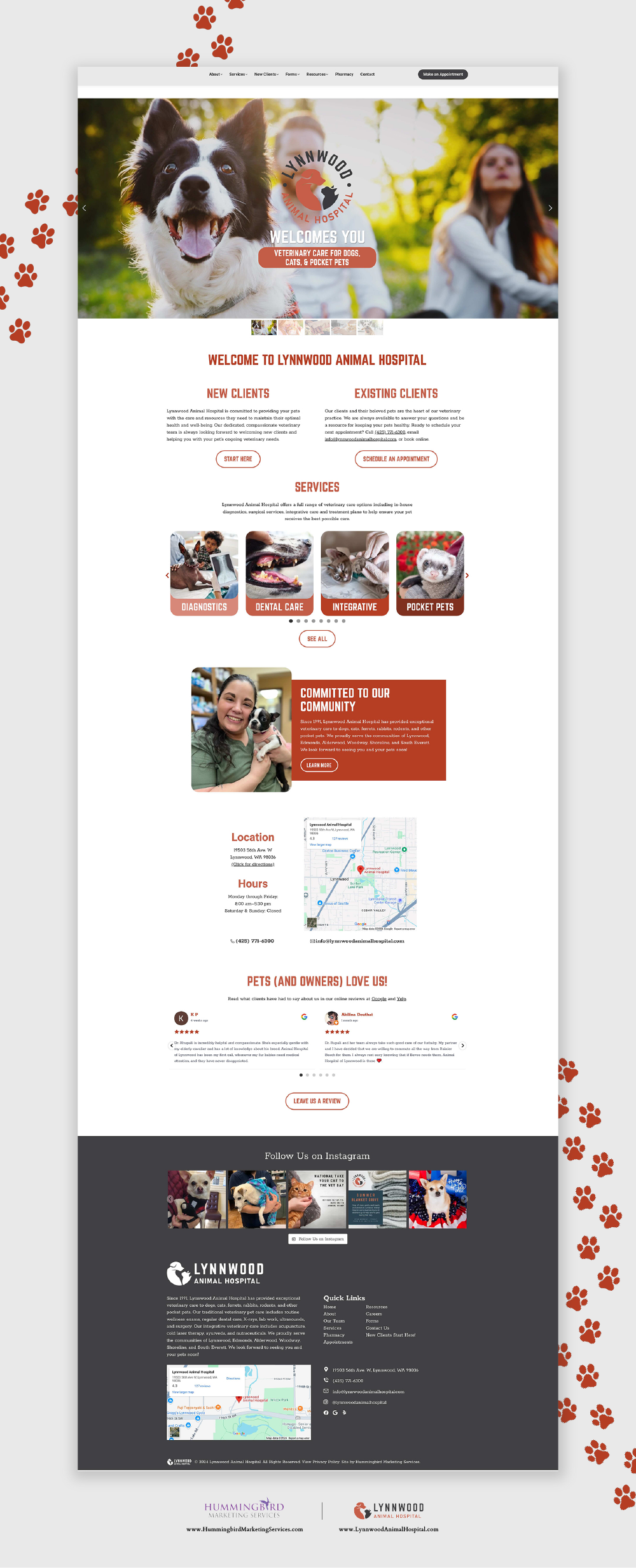 We embedded a widget on the Home page to dynamically pull in Lynnwood Animal Hospital’s Google Reviews.