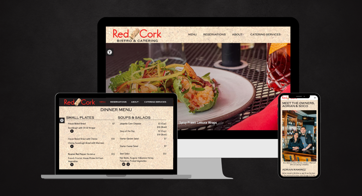 We set our efforts on creating a website for Red Cork Bistro that feels as warm and inviting as the restaurant itself. Adrian has built something special, where every meal is made from scratch and customers return not just for the food but for the experience. Our goal was to bring that feeling to life online, illuminating what sets RCB apart.