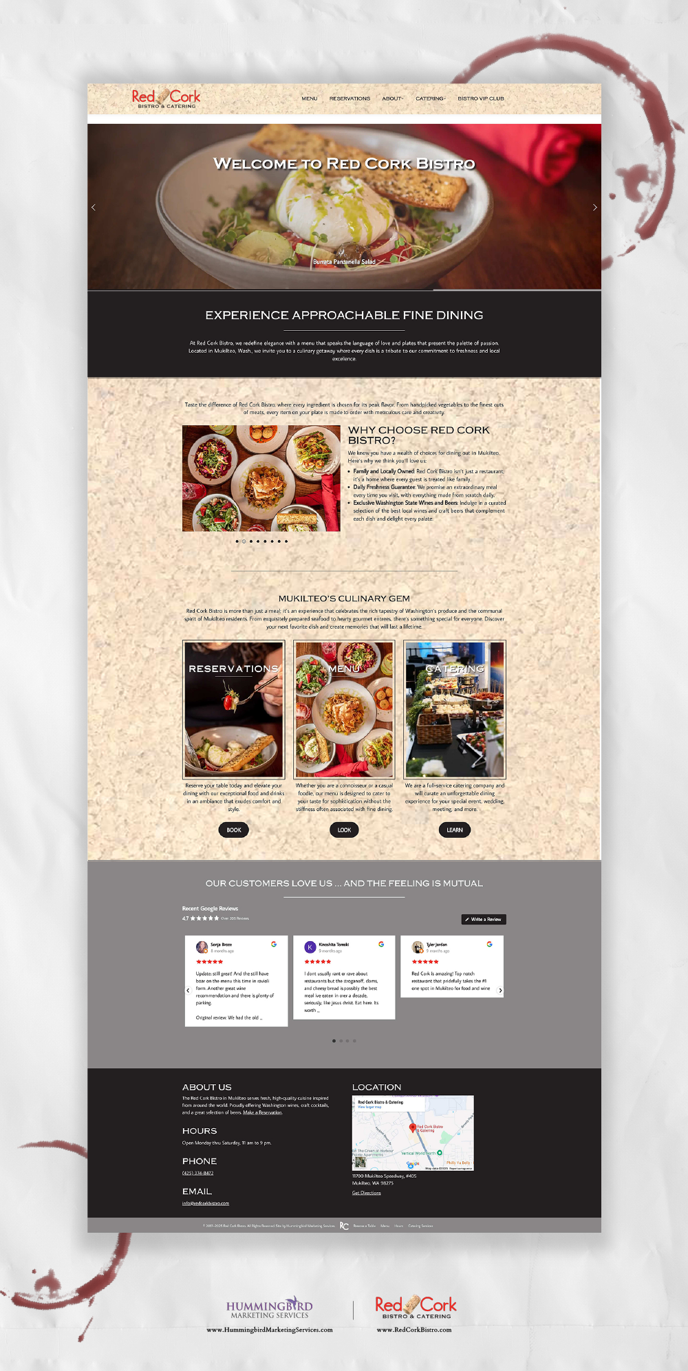 One of the biggest wins for Red Cork Bistro was making sure more people could find the restaurant online. Prior to working with us, the website wasn’t set up in a way that helped it show up in search results, which meant potential customers were missing out. Now, with effective SEO, the site’s visibility has expanded beyond Mukilteo and Edmonds, bringing in more diners who might not have found it before.