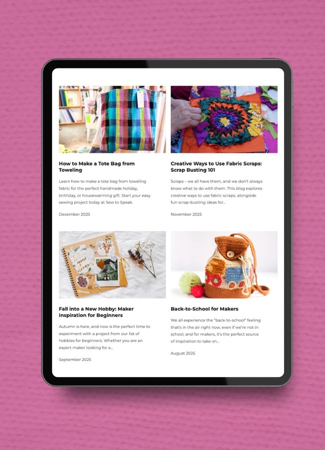 Just as we did a complete overhaul of the site’s product inventory, we knew the best move forward for Sew to Speak was to sort through the blogs, remove outdated posts, and organize and optimize the timeless content. In our blog update, we wanted to ensure the content was SEO focused without compromising engagement or readability. To reinvigorate the blog, we crafted a plan for publishing new entries monthly, to ensure that the content is fresh and up-to-date, driving traffic through SEO and establishing Sew to Speak as the maker’s paradise that it is.